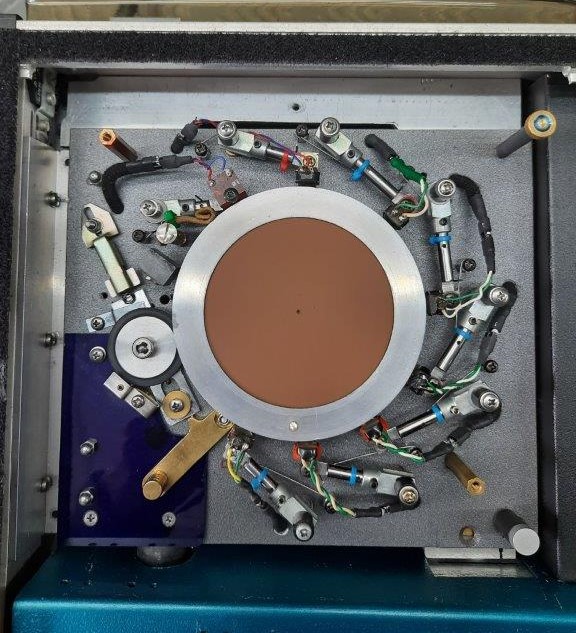 – Metalen koppenplaat die standaard is voorzien van boringen voor 6 koppen. Hierop staan rondom het Wheel een opname- en wiskop en 4 tot 6 niet evenwijdig geplaatste weergavekoppen alsmede een smeer/poetsviltje, al deze componenten worden met verende armpjes tegen de magnetische laag gehouden.