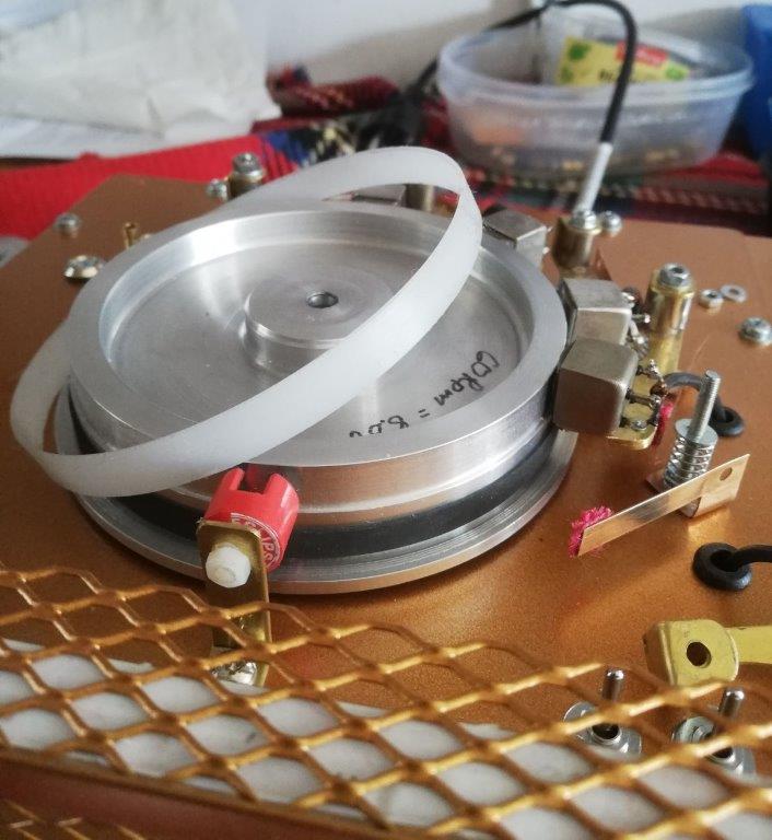 – Gebalanceerde 11 cm drum (Wheel) van gegoten aluminium dat aanvankelijk ontworpen is als vliegwiel in een Lesa (Milaan) Jukebox draaitafel en bij Philips (Milaan) aan de zijkant werd voorzien van een magnetische Gamma-ijzer (III) oxide (Fe2O3) laag in een plastic coating vastgezet. Drooglopend bleek deze magnetische laag niet erg slijtvast, er kwamen daarom versies met een rubber band rondom het Wheel waarop 1/2 inch magnetische bandrecordertape werd geplakt die door de gebruiker vervangen kon worden.