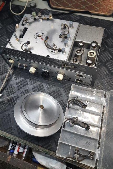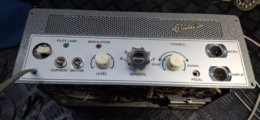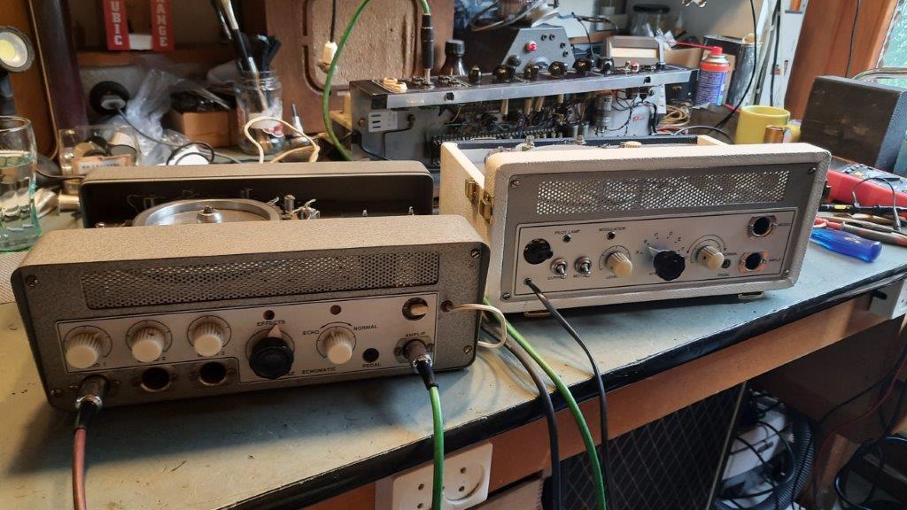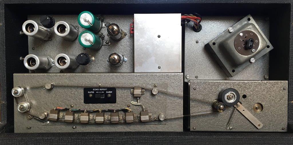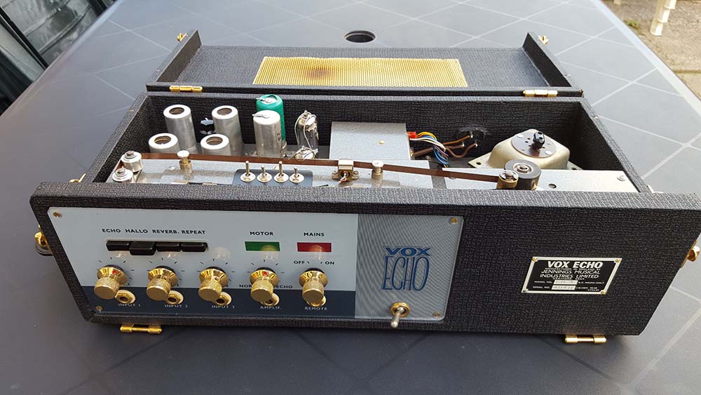 Tot voor kort was Alan Jackson’s echo in het Cliff & The Shadows circuit (via o.a. de Sound- Echo- en Shadsfax publikaties) al jaren bekend als het enig overgebleven Echomatic Model No 2 exemplaar van de ongeveer 20 in de UK. Eind 2019 waren er signalen over de vondst van een 60 jaar oud volledig origineel exemplaar waar wel het nodige restauratiewerk voor nodig was om het werkend en in oude glorie te herstellen. Die job was op het lijf geschreven van Piet van Dort, die ruime ervaring heeft met Vox, Meazzi, Binson en andere vintage audio. Onderstaande galerij vormt impliciet een verslag van de restauratie vanaf moment van ontvangst tot de museumstaat met geweldig geluid die er nu is. Een geweldige prestatie en kroon op het werk van Piet van Dort waardoor Cliff & Shadows muzikanten via deze site eindelijk uitgebreid kennis kunnen nemen van deze holy grail voor het The Shadows geluid.