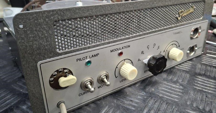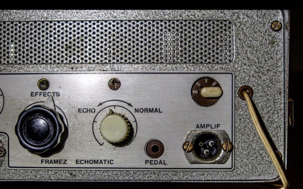 Hank Marvin zag een van deze toestellen (Model – J) bij collega muzikant en zanger Joe Brown (**) , die er overigens minder mogelijkheden in zag dan Hank. Hank kocht daarop in 1960 een Echomatic Model – F(ramez) met 5 weergavekoppen bij de Jennings Shop. Er is weinig bekend over deze echo, alleen de advertentie van het single speed model, geen foto’s of schema.