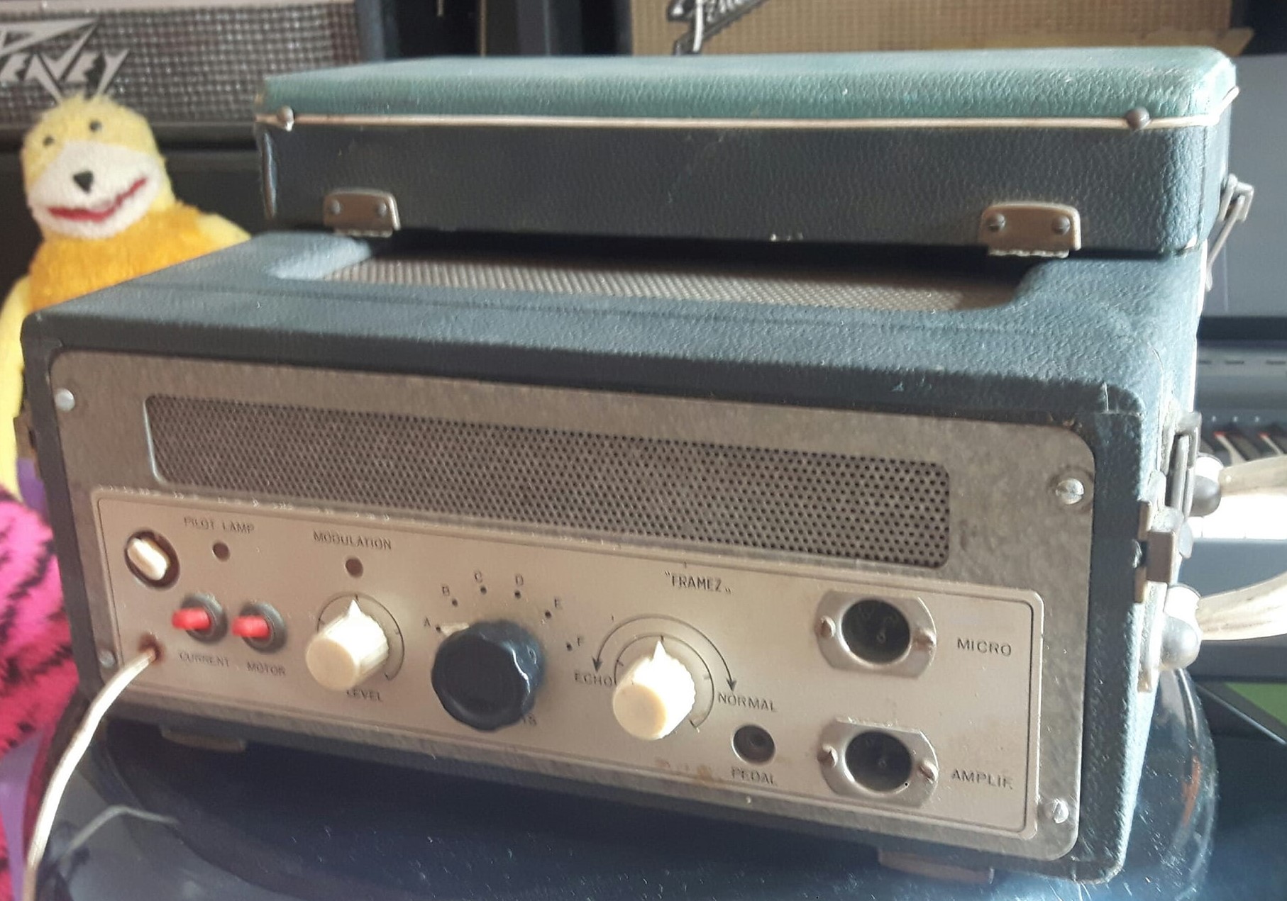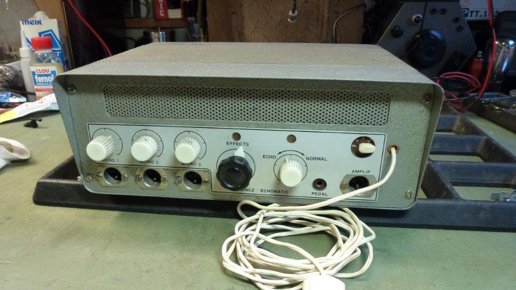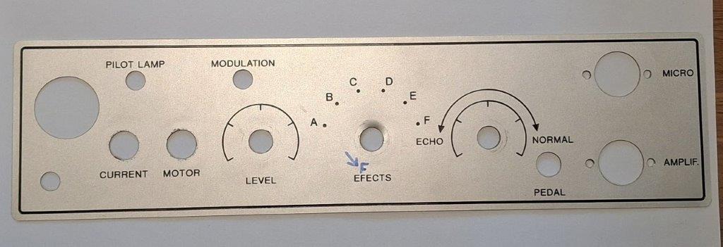| Witte Meazzi controls links en rechts | Modulation Level (links) en Echo volume (rechts) | Modulation Level (links) en Echo volume (rechts) | 3 x Input/Volume (links) en Echo/Mains (rechts) | |