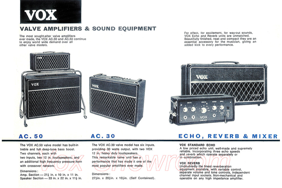 Vervolgens werden eigen in Engeland ontworpen en gebouwde Vox /JMI producten aangeboden.