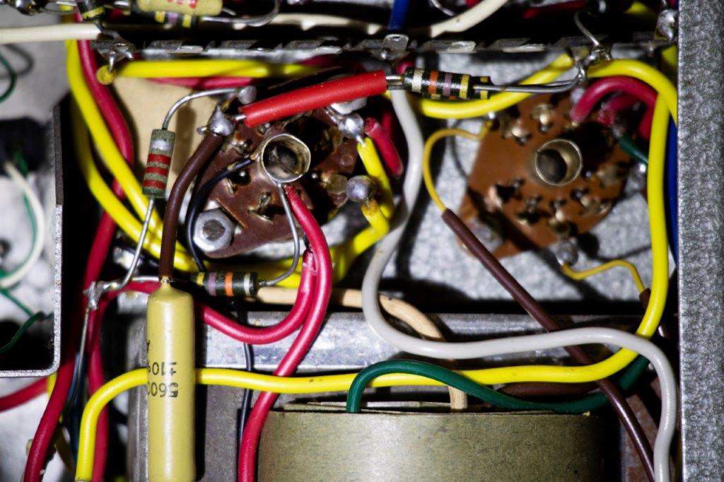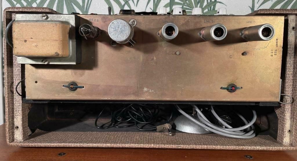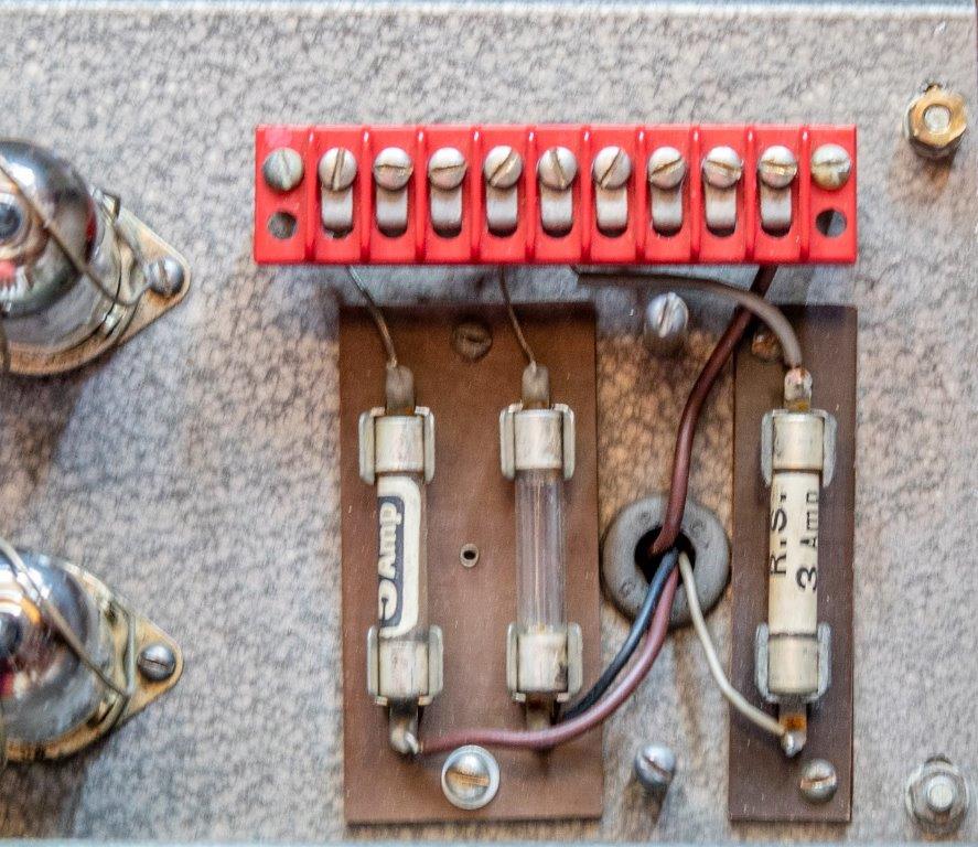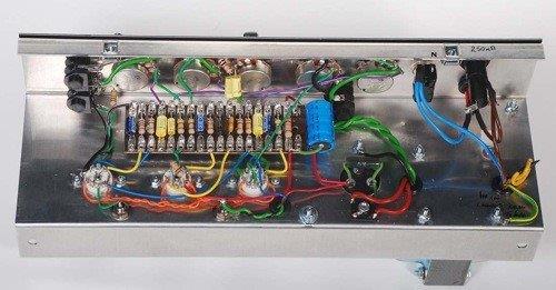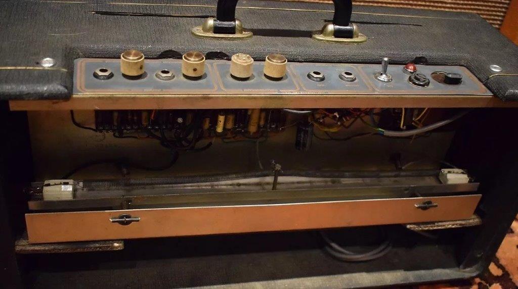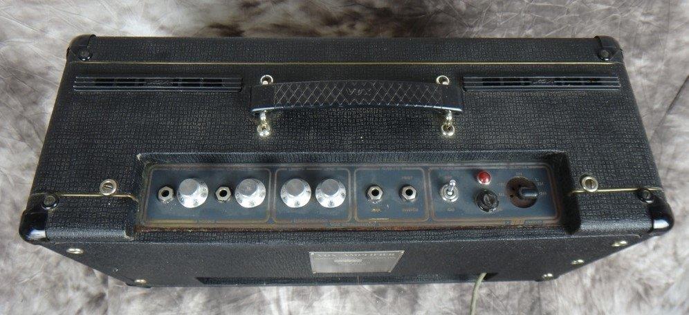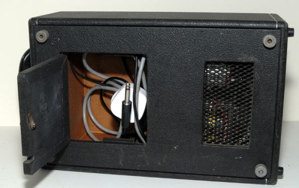 – Geloso no. 398 in- en output sockets, Geloso no. 9004 footswitch socket (voor 5 mm jack no. 9008), 2 controlelampjes en een pill spanningsregelaar. De aansluitsnoeren hadden een Geloso no. 396 plug.