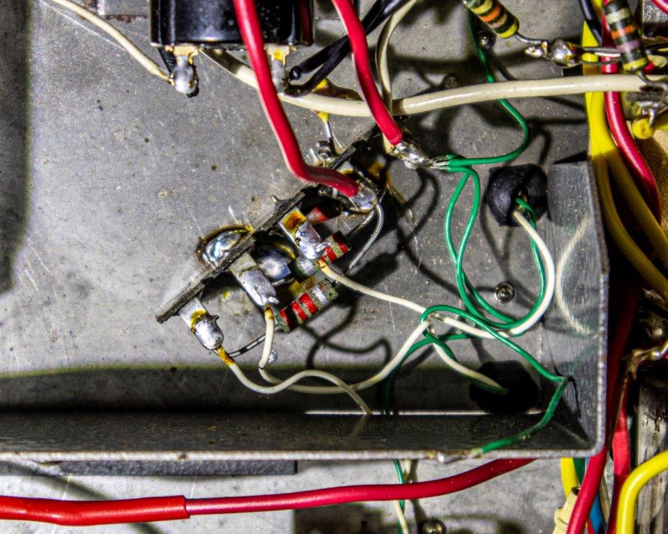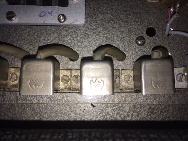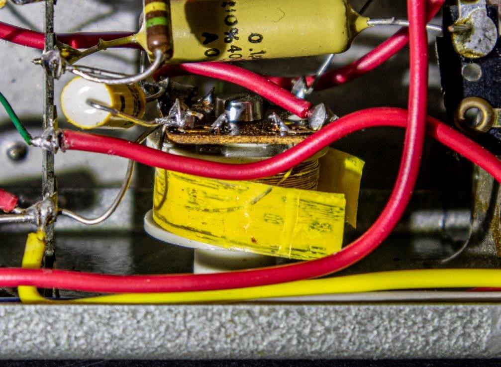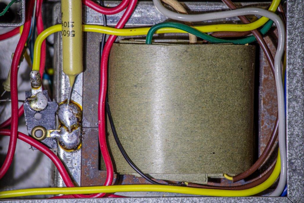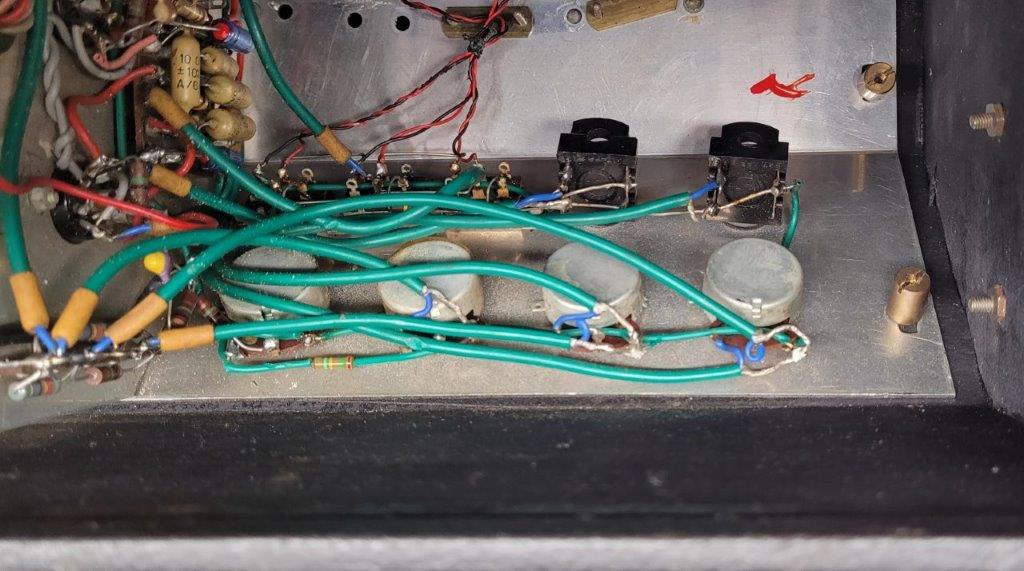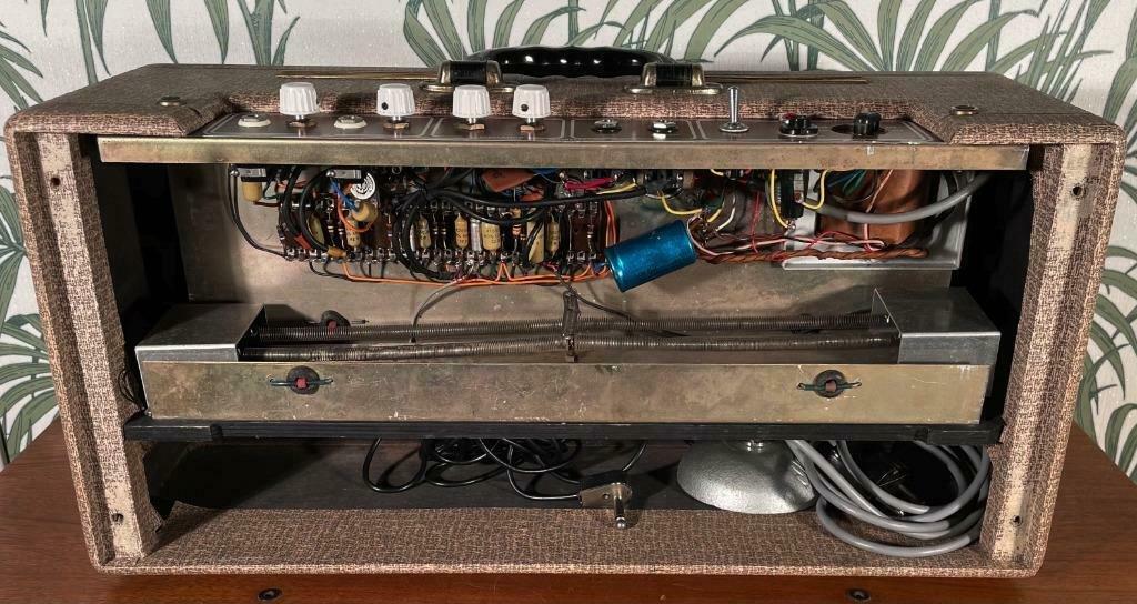 – Geloso no. 398 in- en output sockets, Geloso no. 9004 footswitch socket (voor 5 mm jack no. 9008), 2 controlelampjes en een pill spanningsregelaar. De aansluitsnoeren hadden een Geloso no. 396 plug.
