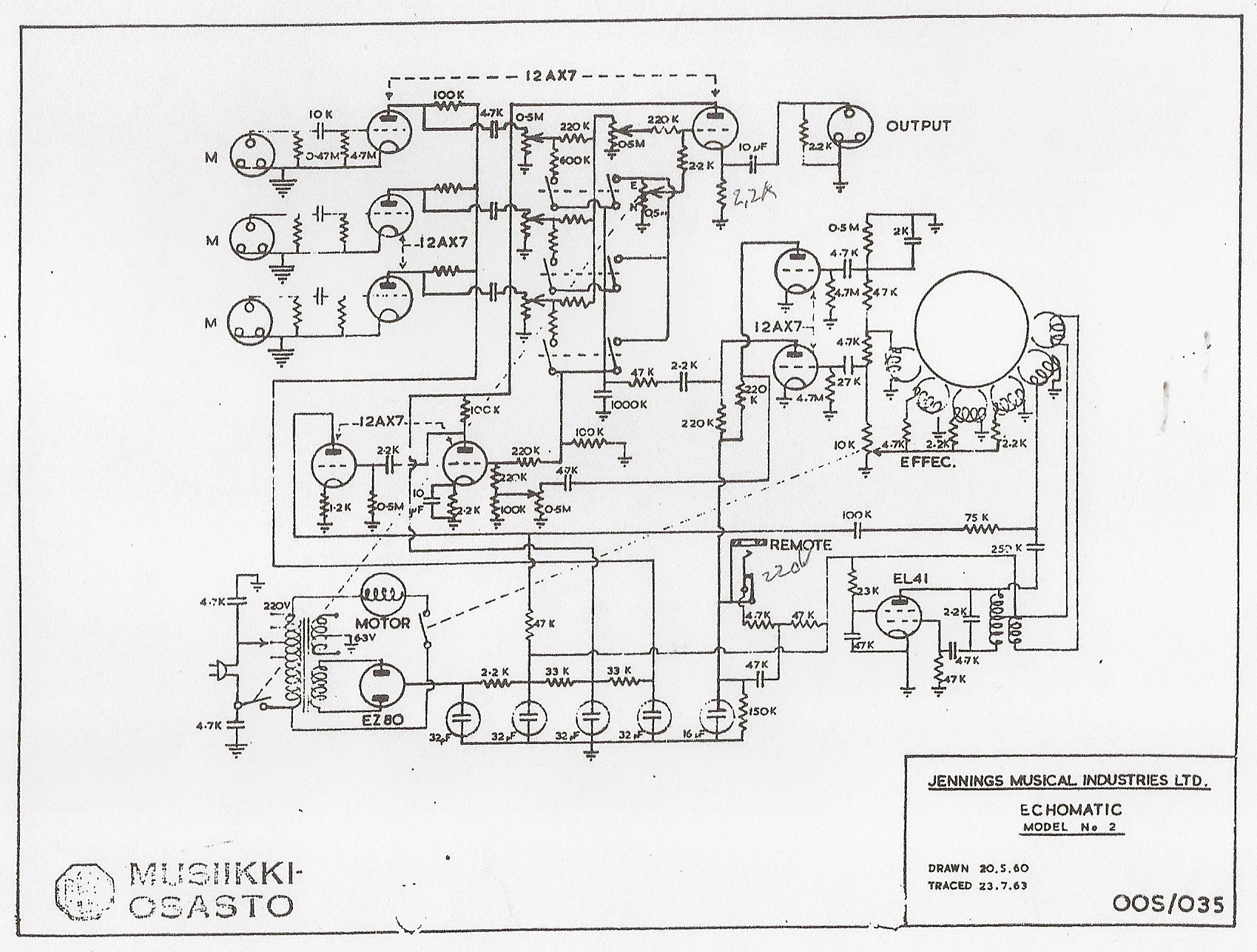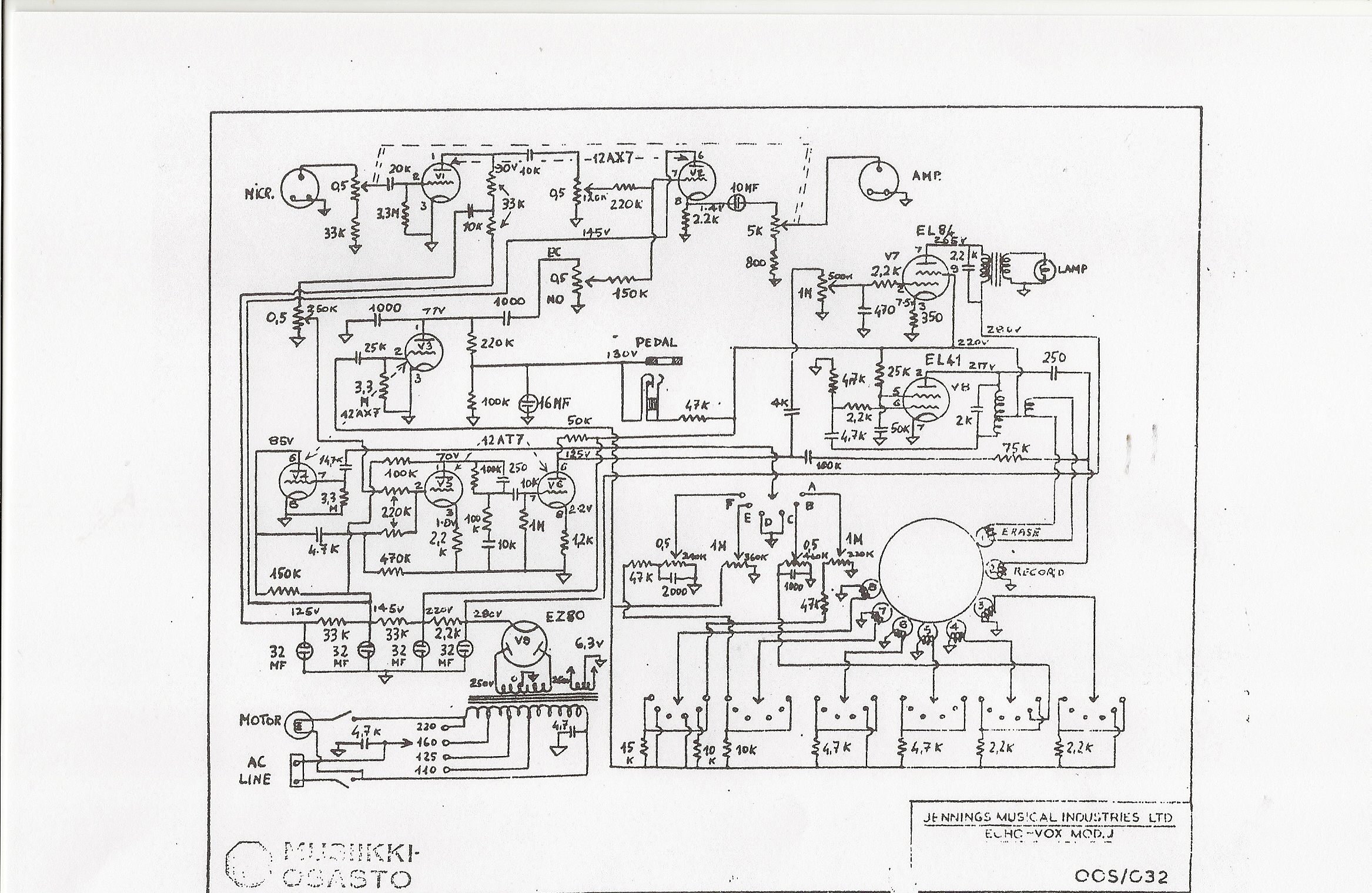 | 6 Buizen | Vermoedelijk gelijk aan Echomatic Model-J | EZ80, EL41, EL84, ECC81, 2 x ECC83 | EZ80, EL41, 4 x ECC83 | |